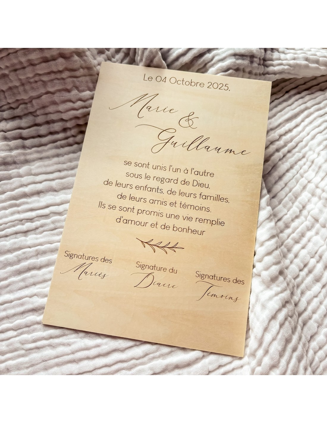 Certificat en bois personnalisé