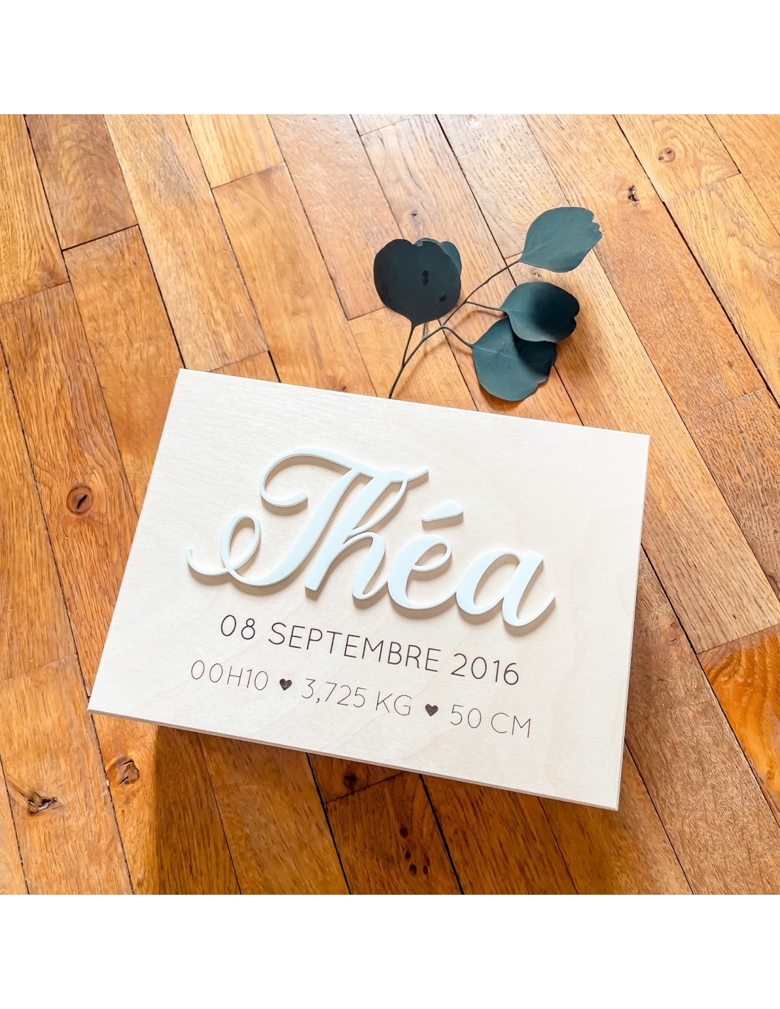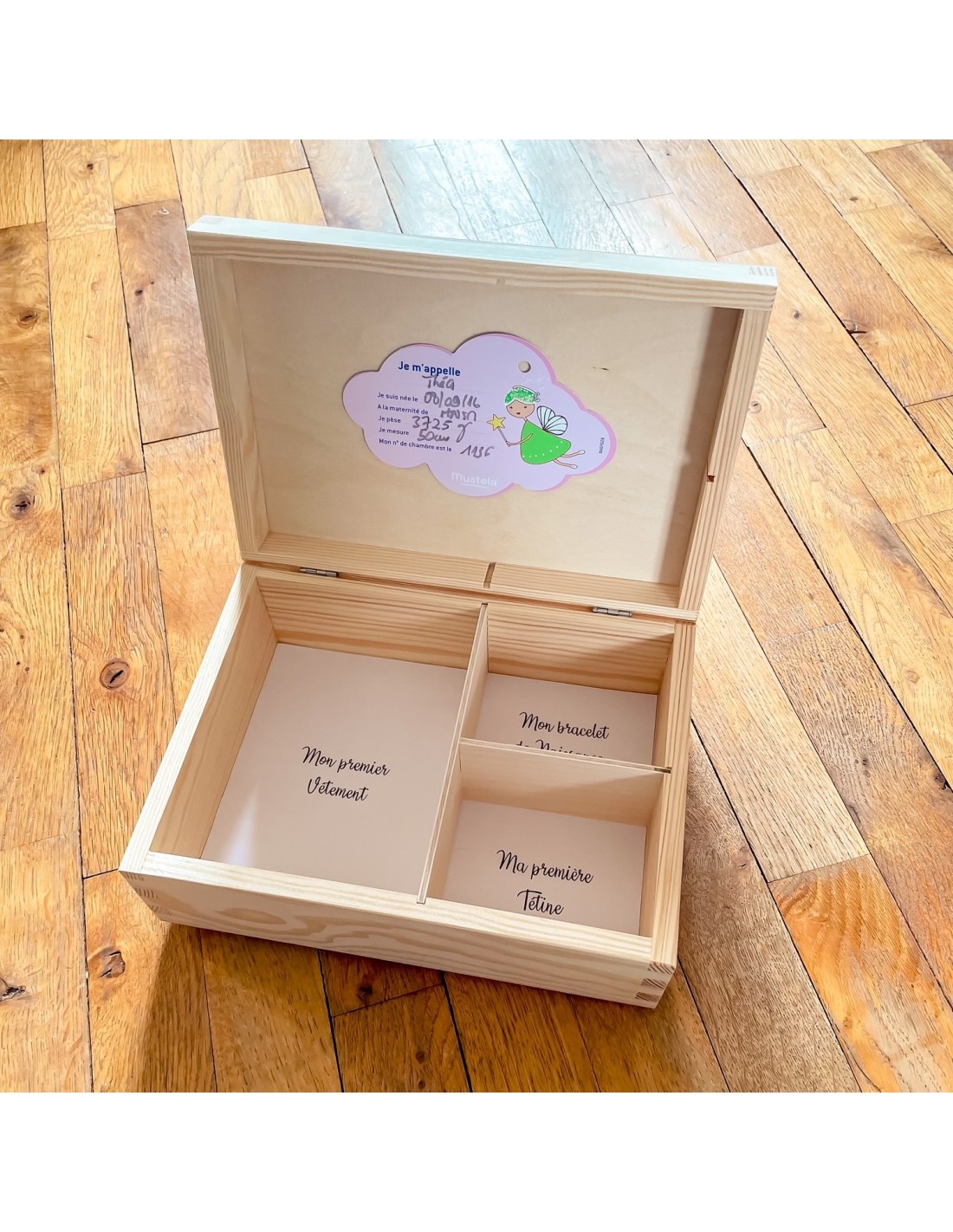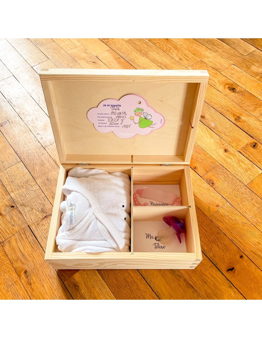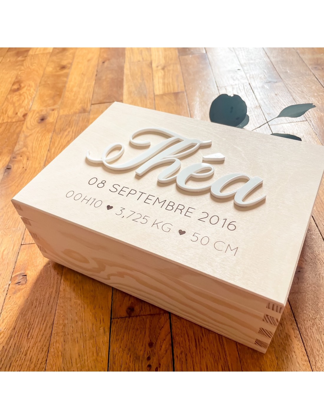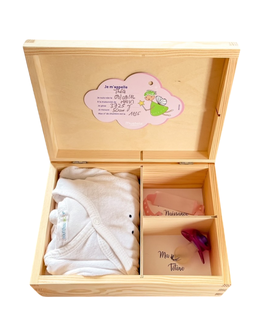 👶 Un coffret de naissance en bois personnalisé pour conserver les tout premiers souvenirs de bébé.