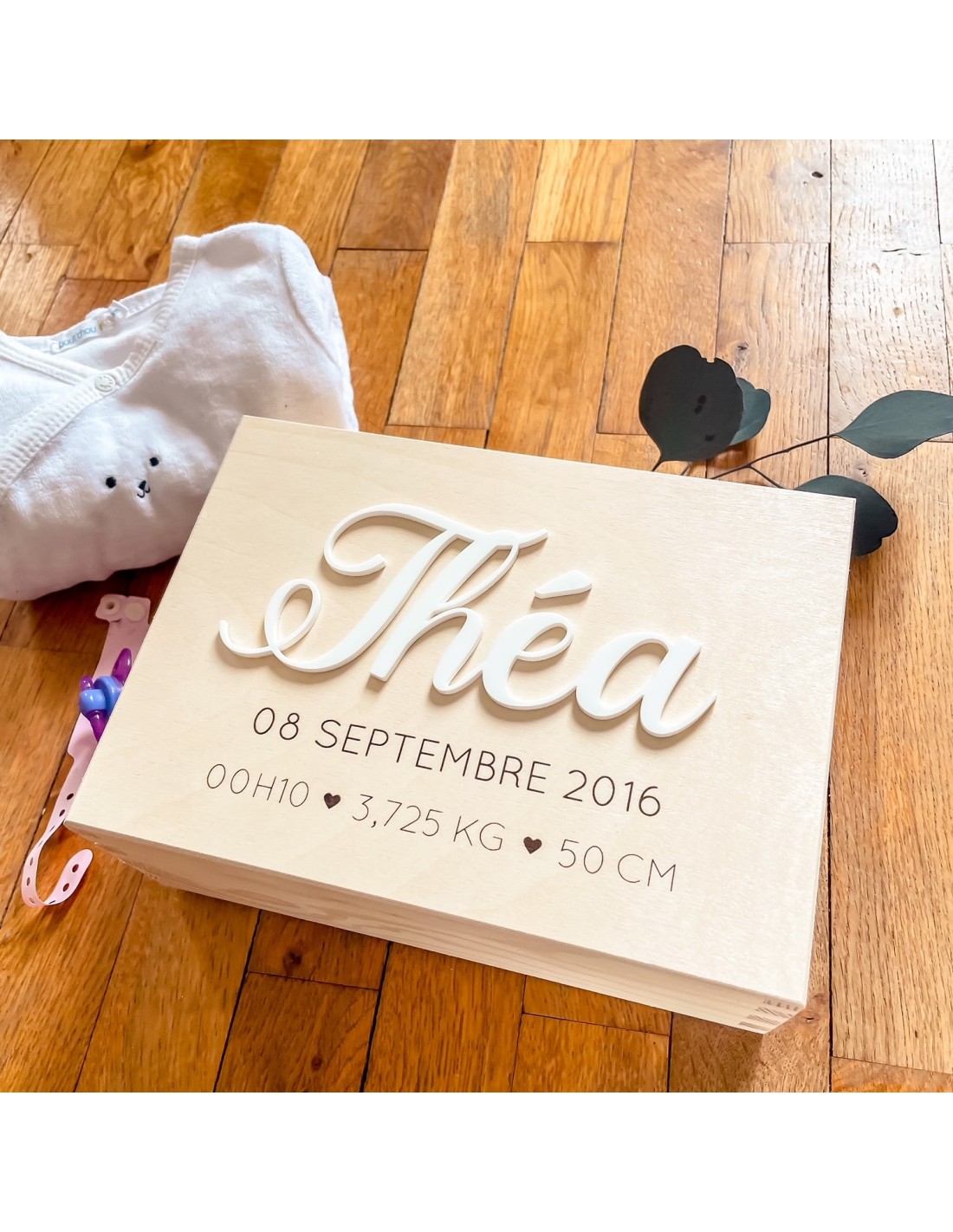 👶 Un coffret de naissance en bois personnalisé, conçu pour conserver encore davantage de souvenirs précieux des premiers jours de bébé.