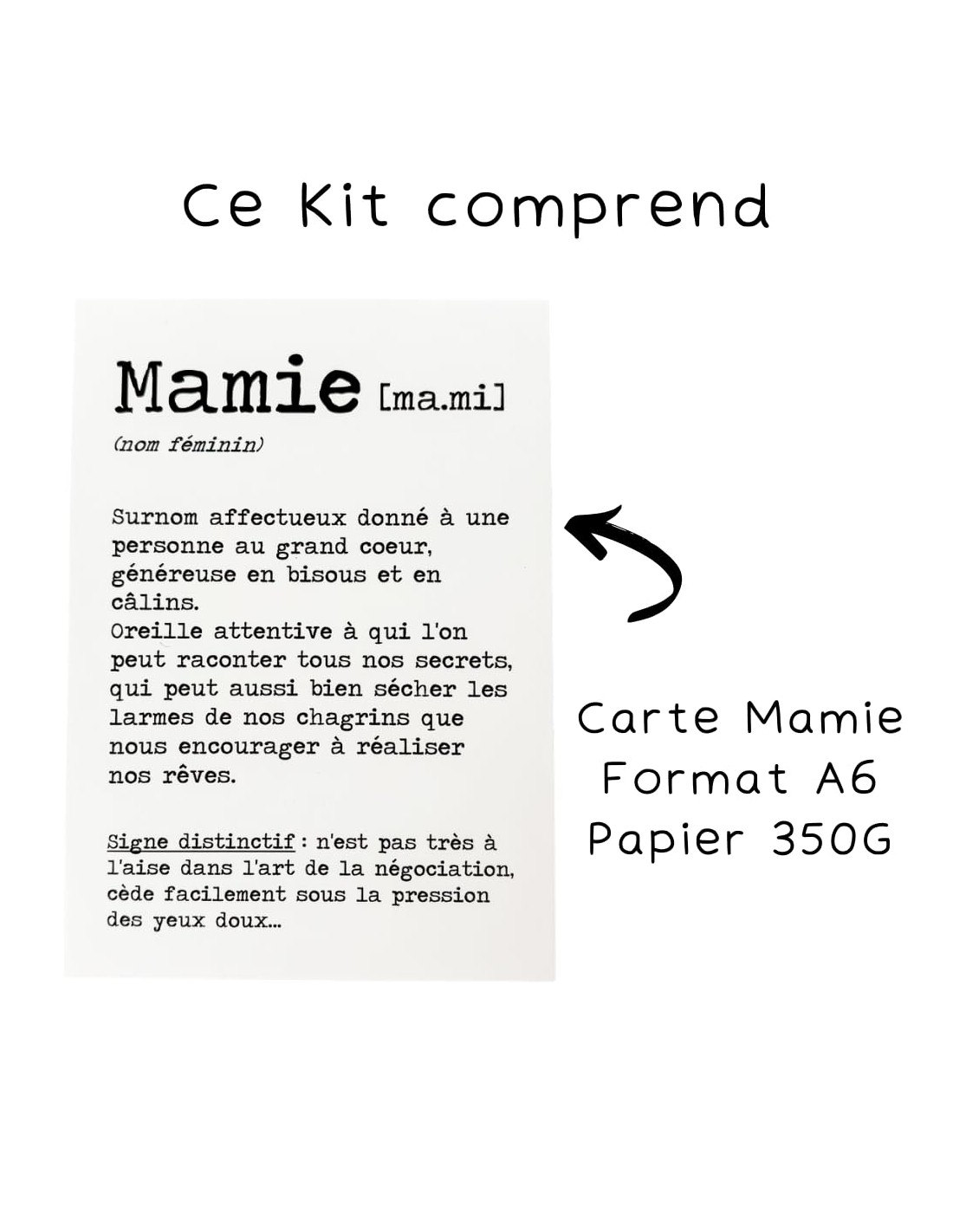 1 carte A6 (papier 350 g) avec définition du mot Mamie