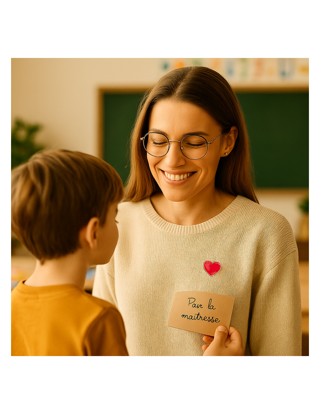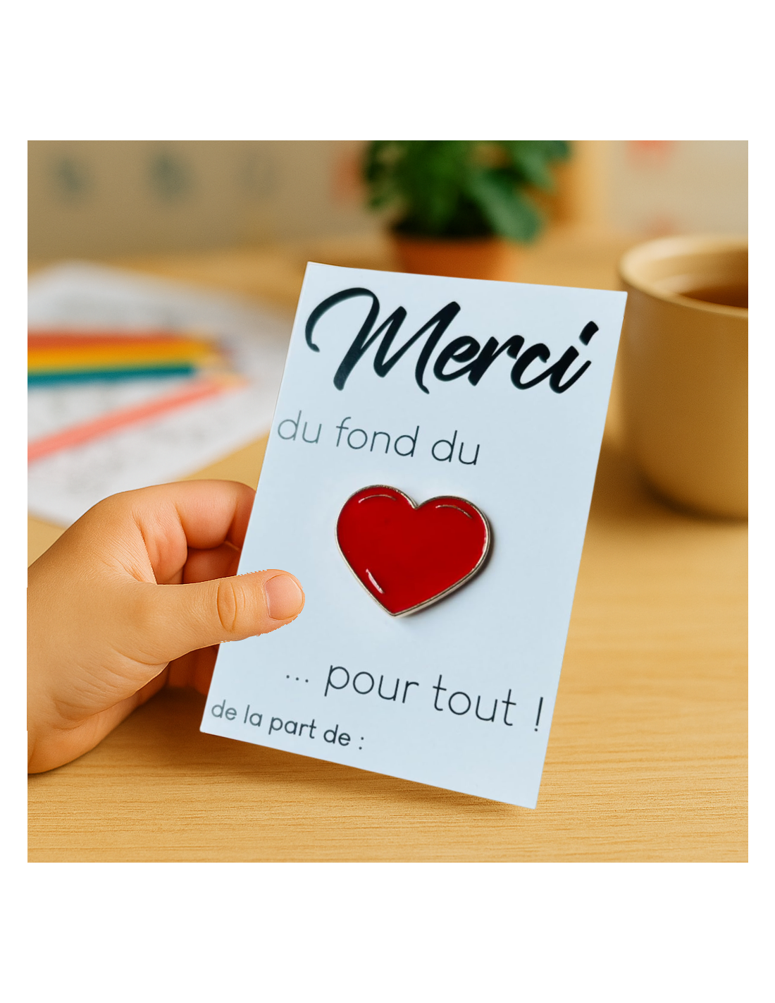 Ce pin's cœur en métal doré et émail rouge brillant est bien plus qu'un simple badge : c'est une petite attention sincère, idéale pour remercier une maîtresse, une ATSEM ou une nounou à la fin de l'année scolaire. Simple, beau, et plein de sens.