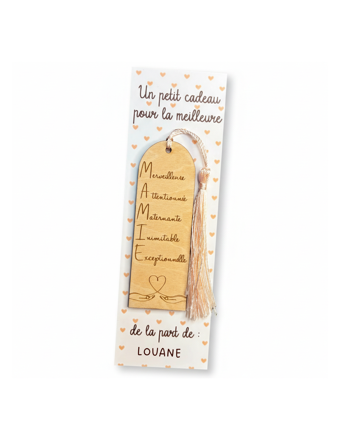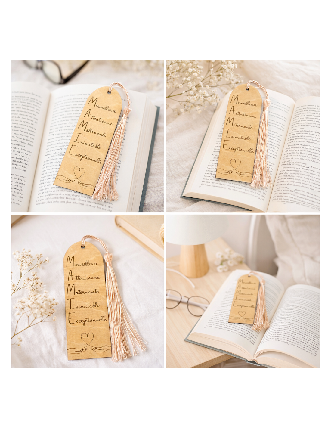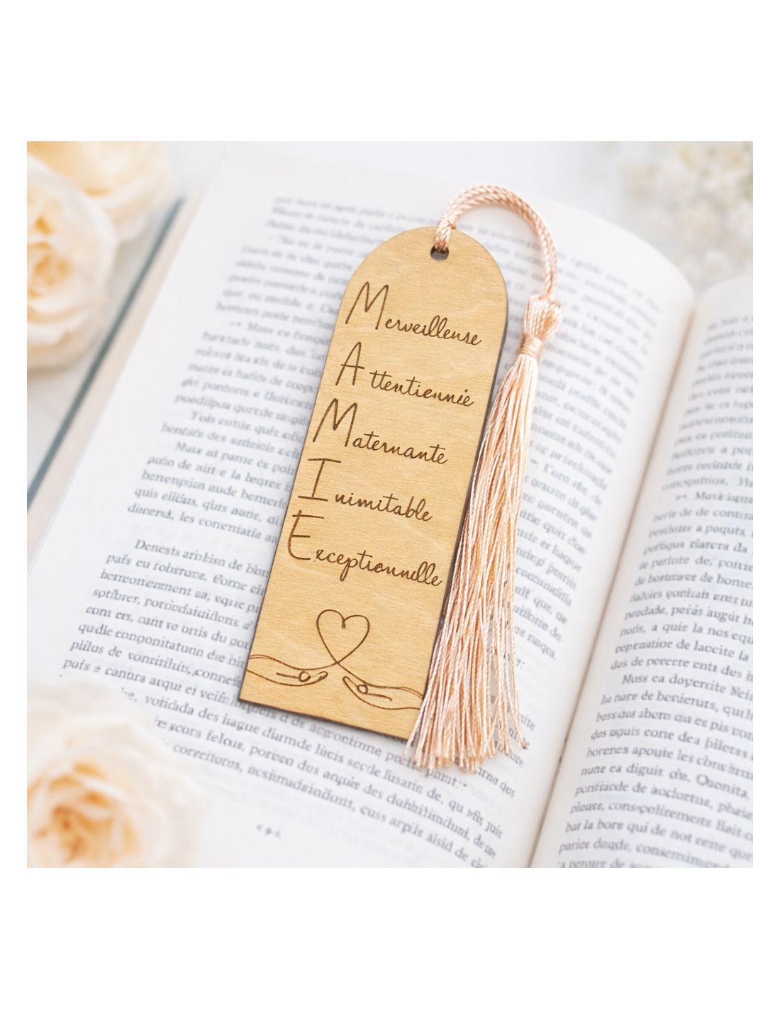 Ce marque-page en bois gravé pour Mamie est une attention délicate, pensée pour accompagner ses moments de lecture tout en lui rappelant combien elle est aimée. À la fois utile et symbolique, il se glisse facilement dans un livre et devient un petit objet du quotidien chargé d’émotion.