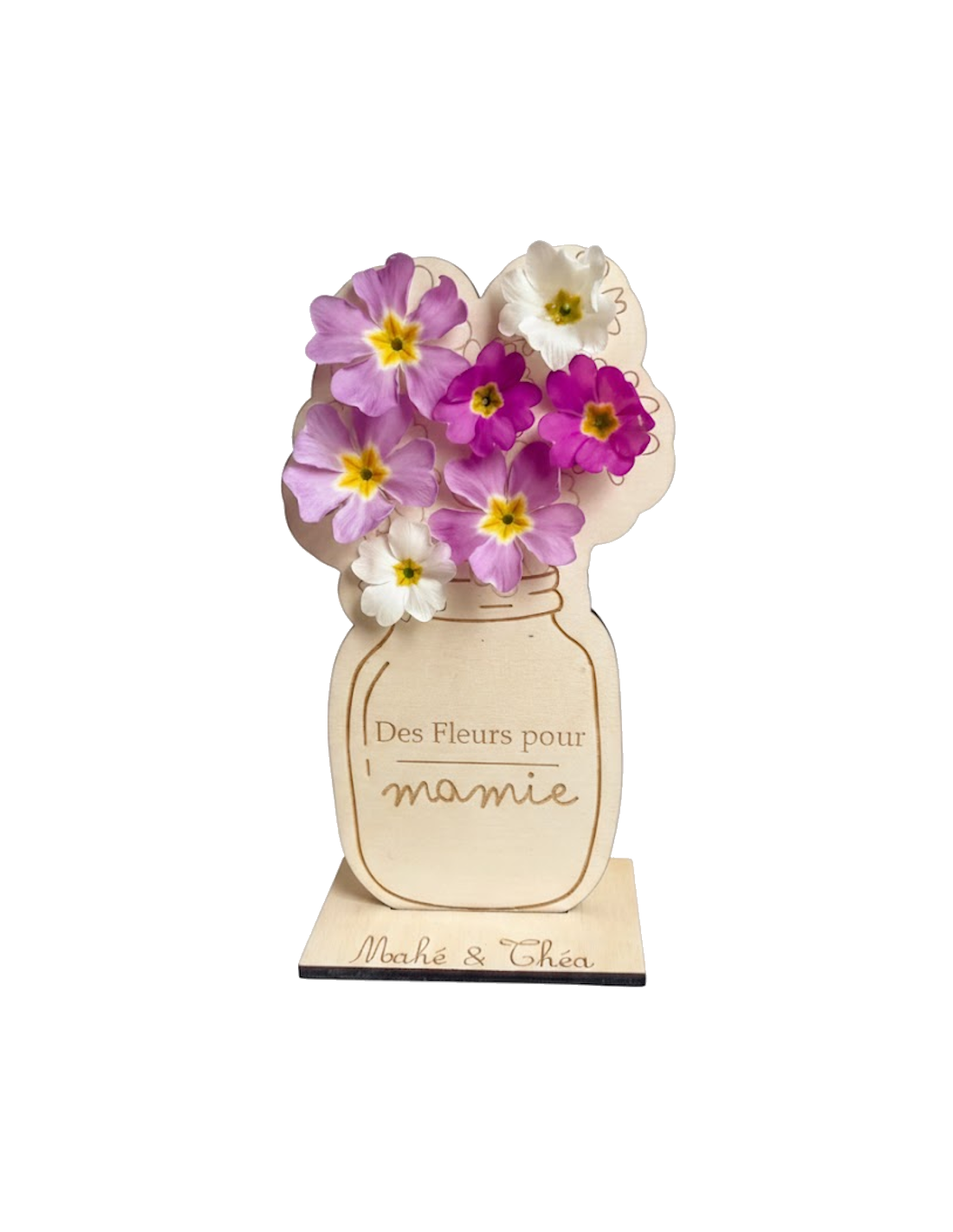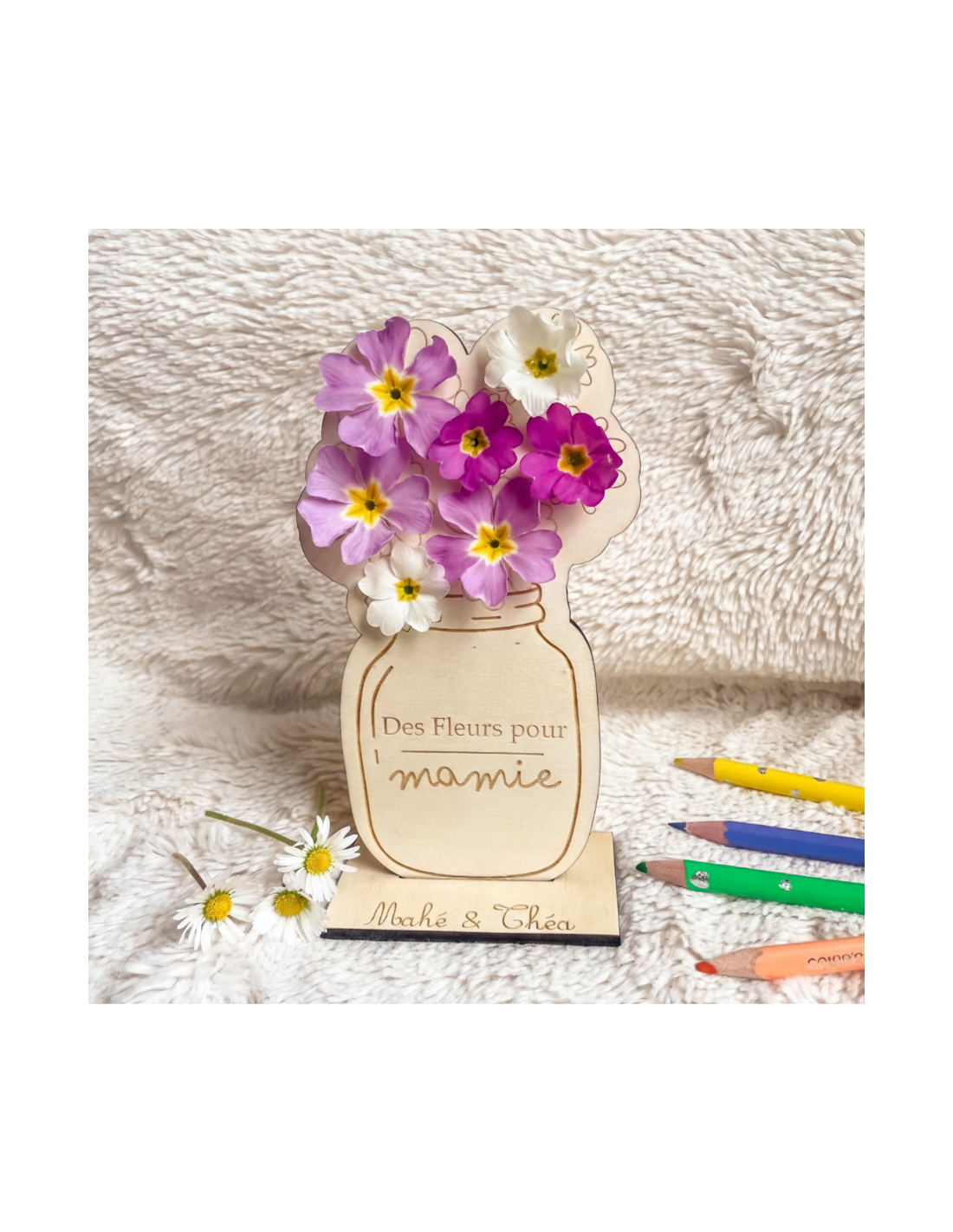 Offrez à une mamie un cadeau à la fois simple, poétique et rempli de sens grâce à cette carte support bouquet de fleurs en bois.