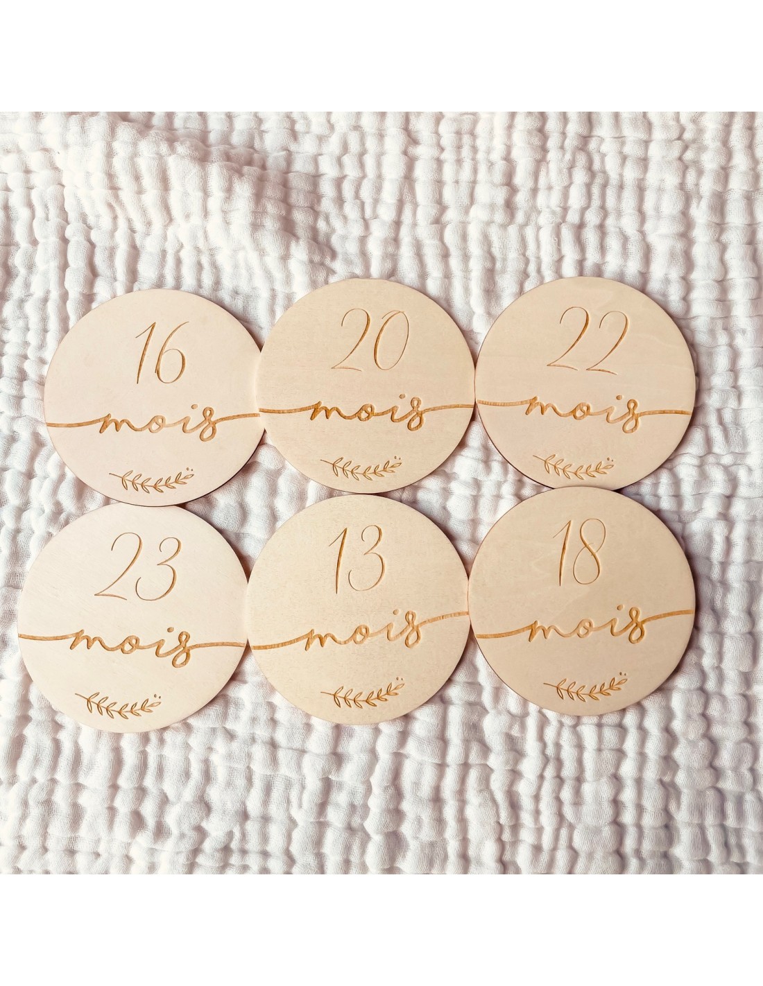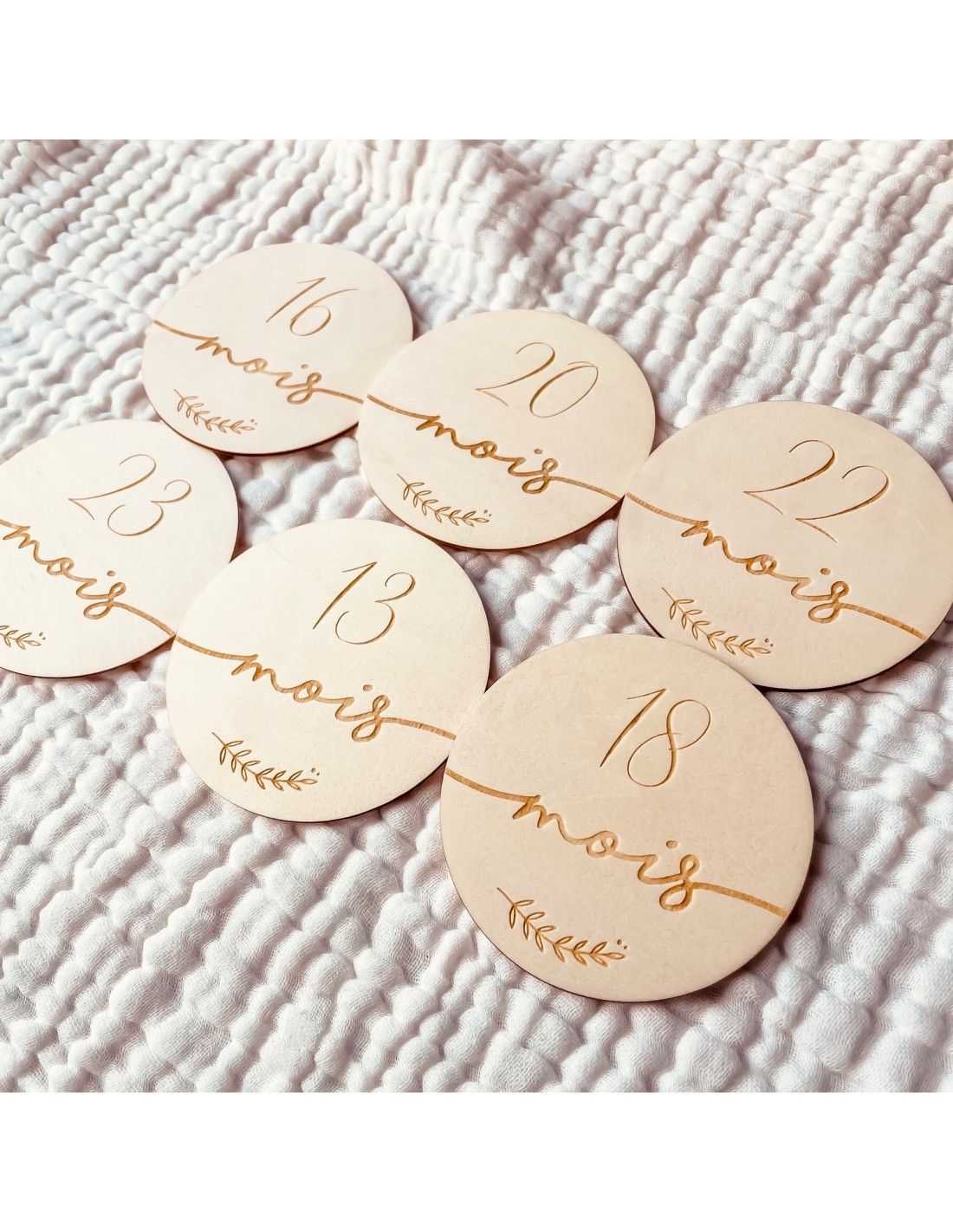 Ce lot de 6 cartes étapes en bois, au style minimaliste et intemporel, permet de photographier bébé de 13 à 24 mois, pour prolonger le rituel photo au-delà de la première année.