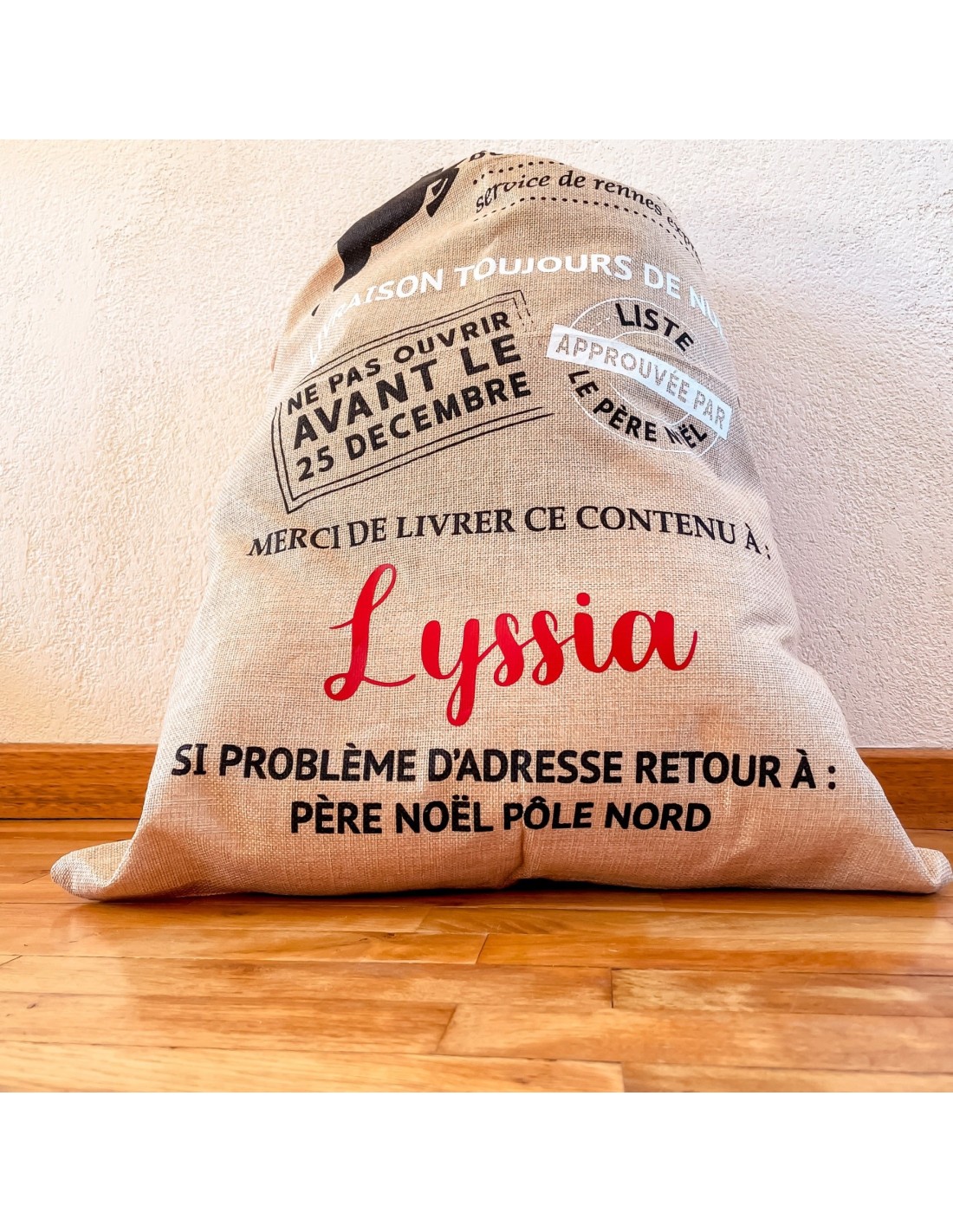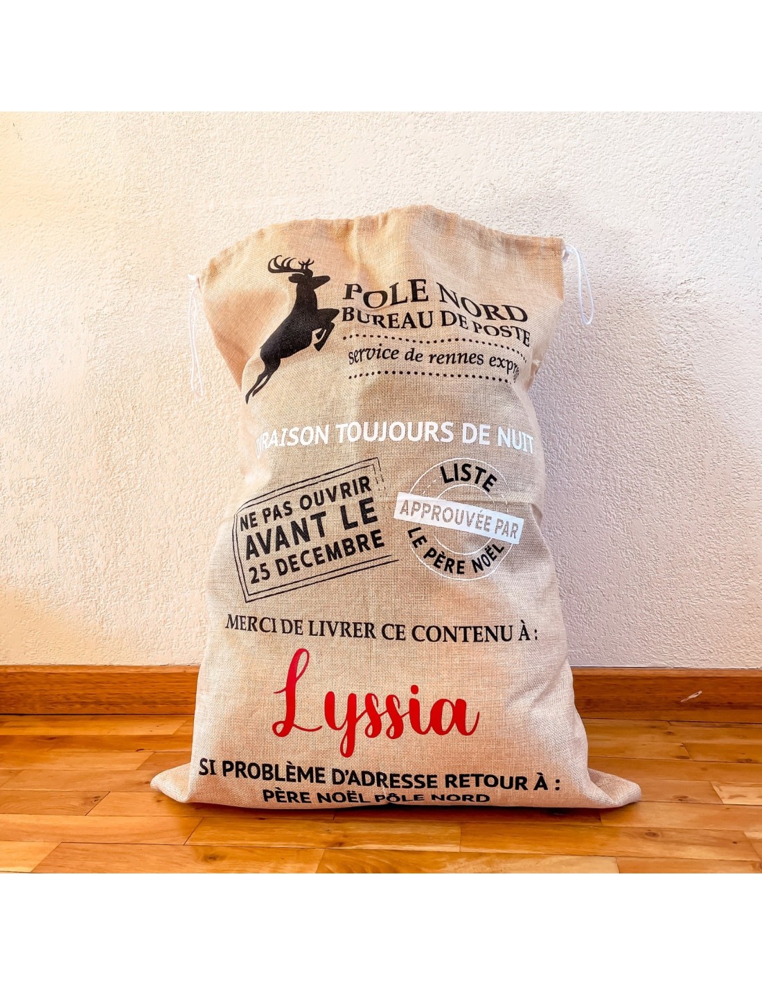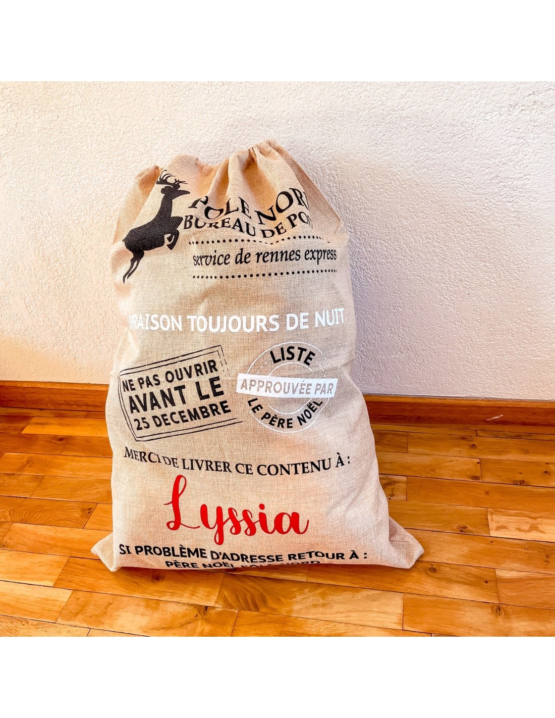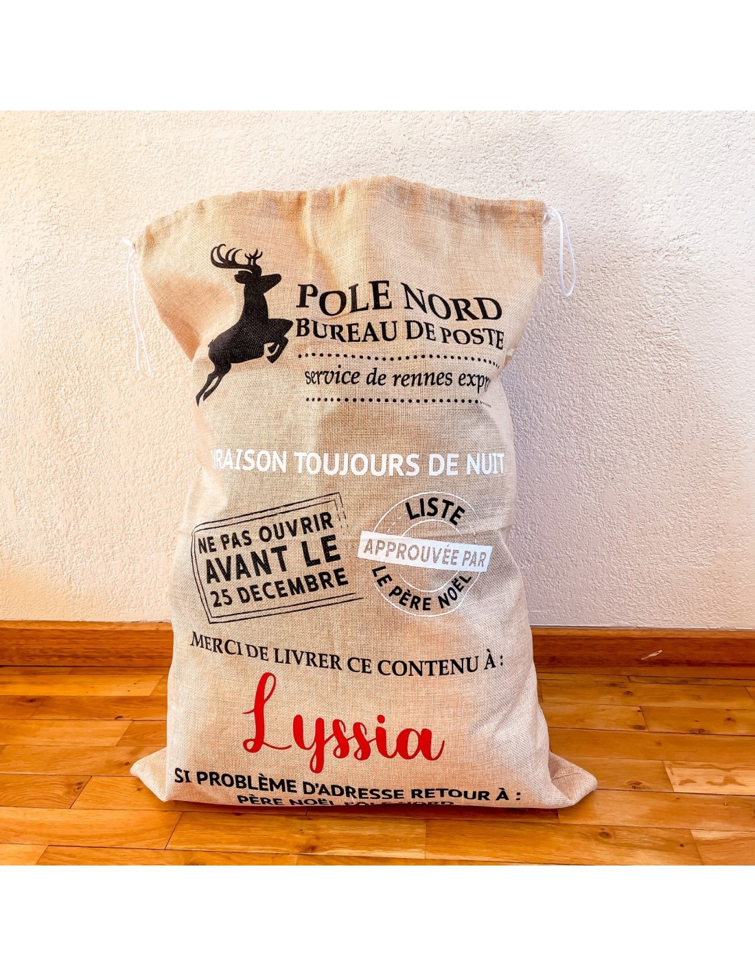 - Ce sac effet toile de jute imite la hotte du Père-Noël pour un effet décoratif très réussi au pied du sapin !