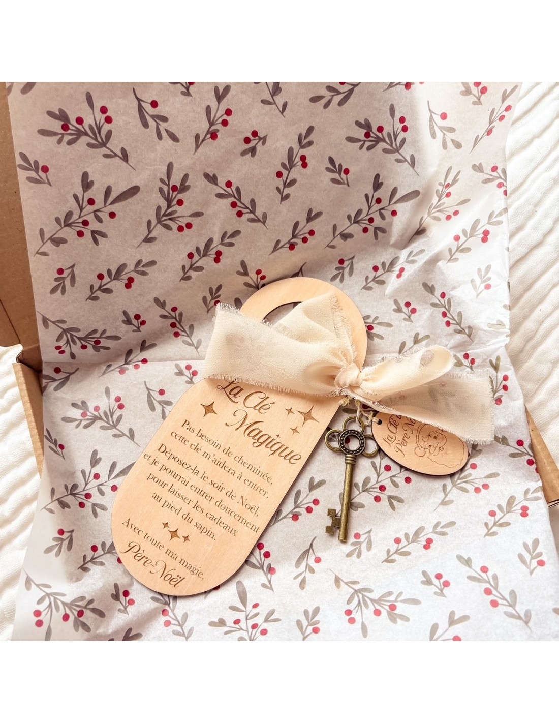 Pas besoin de cheminée pour que la magie opère ! Cette clé spéciale permet au Père Noël d’entrer doucement déposer les cadeaux au pied du sapin. Il suffit de la suspendre à la porte le soir du 24 décembre, avant d’aller se coucher.